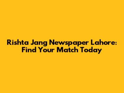 Rishta Jang Newspaper Lahore: Find Your Match Today